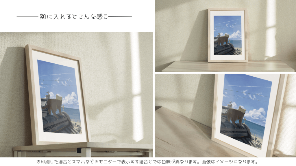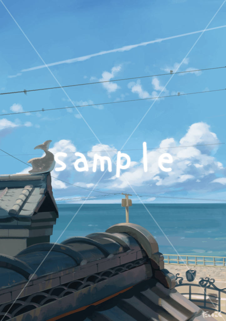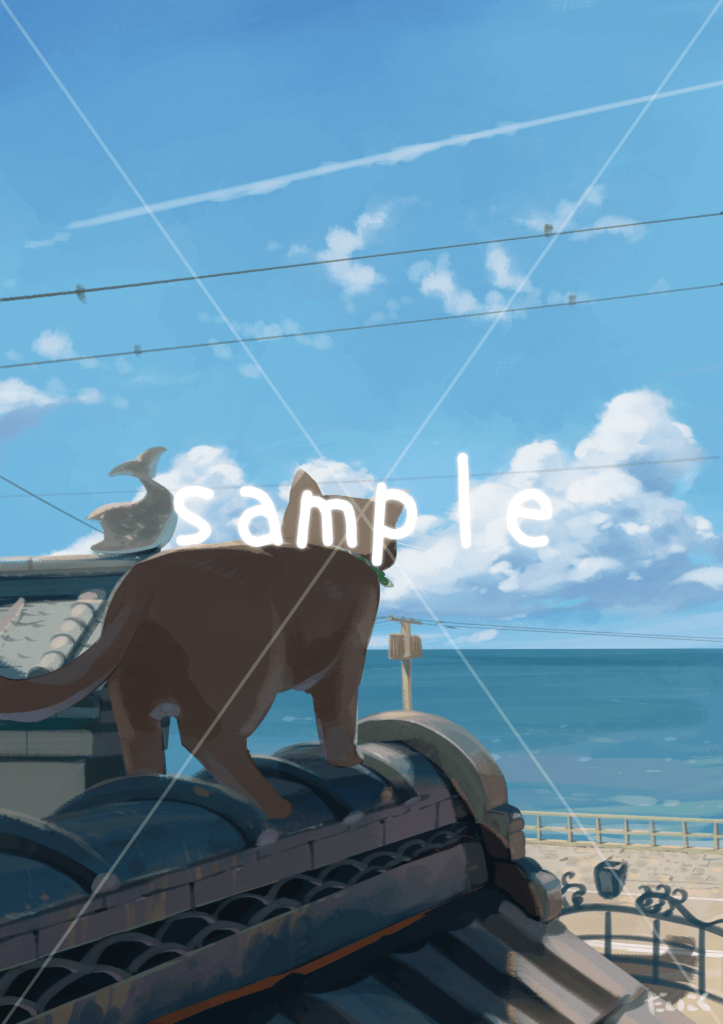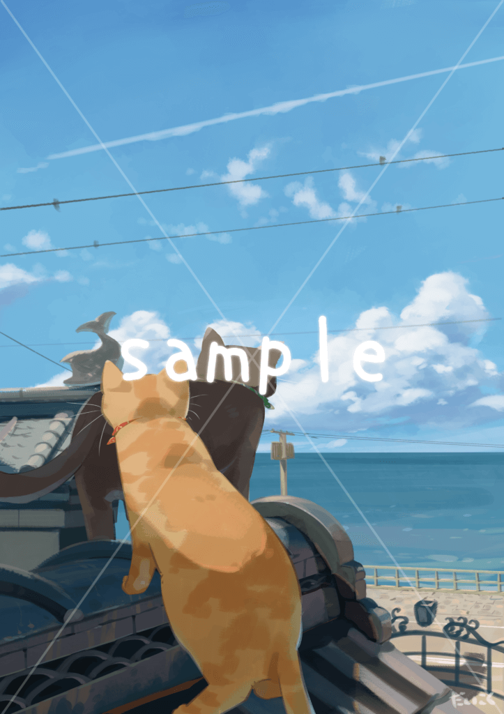気持ちよかった記憶を手元に描き出した。心地よい海風と風景の中へ猫様を連れ出してみては。